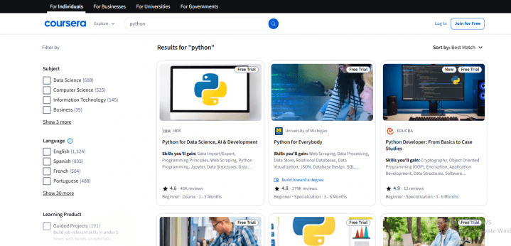 Coursera also offers a Free Trial, so you can explore the full course before paying.