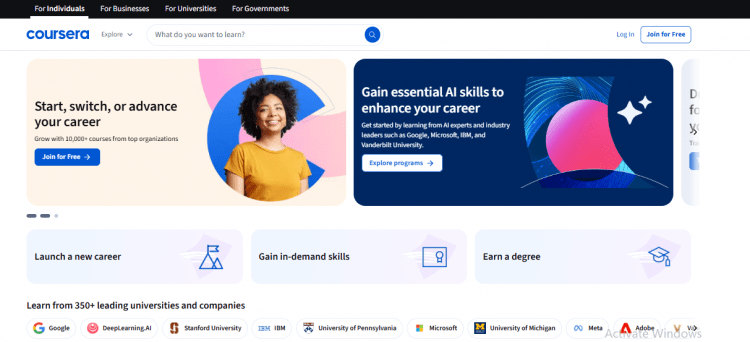 If you’ve ever wanted to learn from top universities like Stanford, Google, or IBM, Coursera is one of the best online learning platforms to start with.